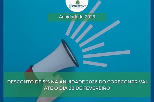 DESCONTO DE 5% NA ANUIDADE 2026 DO CORECONPR VAI ATÉ O DIA 28 DE FEVEREIRO