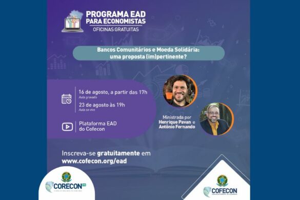 A Escola de Educação a Distância para Economistas do Cofecon tem o prazer de apresentar a oficina “Bancos Comunitários e Moeda Solidária: uma proposta (im)pertinente?”. A aula será gravada no…