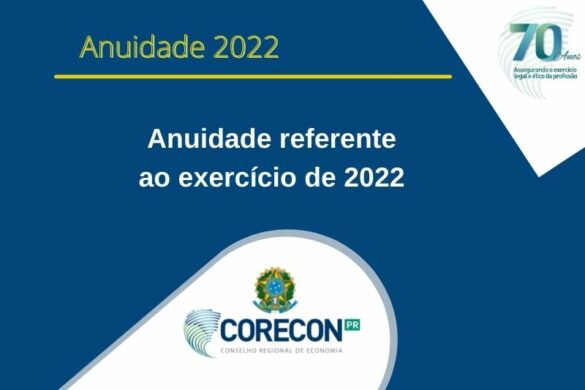 O CoreconPR informa aos economistas e empresas registradas que enviou via correios, o carnê para o pagamento da anuidade referente ao exercício de 2022. Não se esqueça de observar as…