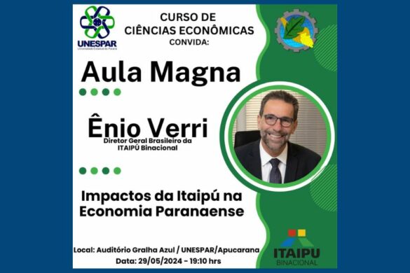 O Curso de Ciências Econômicas da Unespar Apucarana promove no dia 29 de maio, às 19h10, a Aula Magna com o Diretor Geral Brasileiro da Itaipú Binacional, Ênio Verri, que…