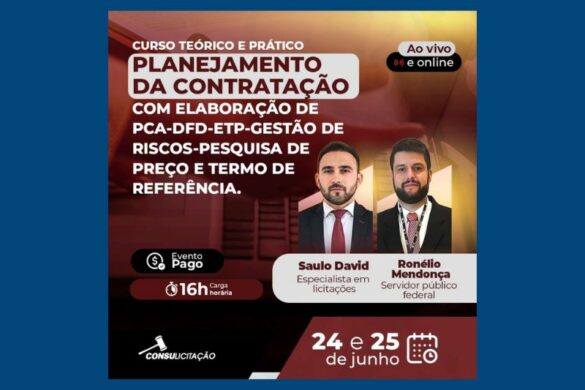 Nos dias 24 e 25 de junho de 2024, será realizado um curso intensivo e prático, ao vivo e online, voltado para a capacitação de servidores públicos na elaboração dos…