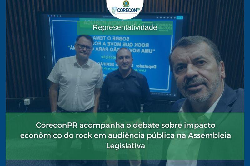 O Conselho Regional de Economia do Paraná (CoreconPR) marcou presença na Audiência Pública intitulada “Rock que move a Economia: uma nova visão para o Paraná”, realizado no dia 17 de março, no plenário da Assembleia Legislativa do Paraná (ALEP), a convite da economista Sabrina Matos. Estiveram representando a entidade o assessor Gilberto Miranda Jr., o gerente executivo Amarildo Santos, e o conselheiro federal Carlos Magno Bittencourt. A presença do Conselho reforça o olhar atento da Economia para setores culturais que geram emprego, renda e inovação.