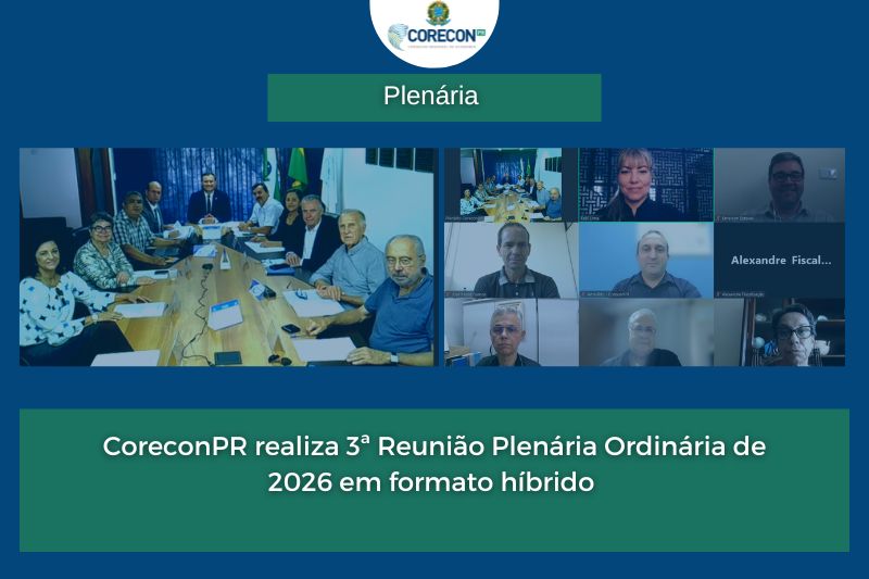 O Conselho Regional de Economia do Paraná realizou ontem (06), de forma híbrida, sua 3ª Reunião Plenária Ordinária de 2026, com participação presencial na sede em Curitiba e por videoconferência. Conduzida pelo presidente Tiago Jazynski, a sessão iniciou com informes sobre a participação do Conselho em eventos institucionais e a aprovação da ata da reunião anterior e demais pertinentes à entidade.
