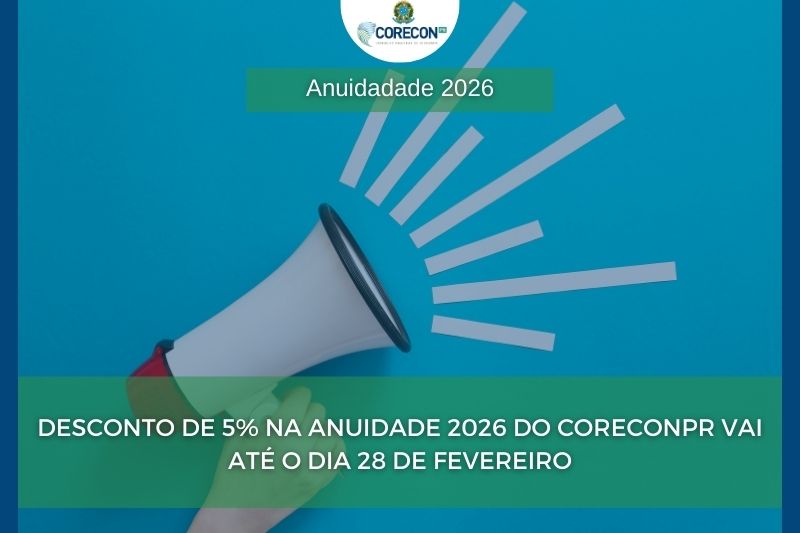 O CoreconPR informa aos economistas e empresas registradas que o pagamento da anuidade 2026 terá 5% de desconto aplicado de forma automática ao efetivar o pagamento até 28/02/2026. As anuidades fazem parte das chamadas “contribuições para fiscais” e têm como finalidade dar condições para que os Conselhos de Economia executem suas atividades. Por este motivo, até o mês de março os registrados têm que estar com a sua anuidade quitada. E, em caso de não recebimento das guias de recolhimento, devem procurar o CoreconPR para quitar a anuidade.