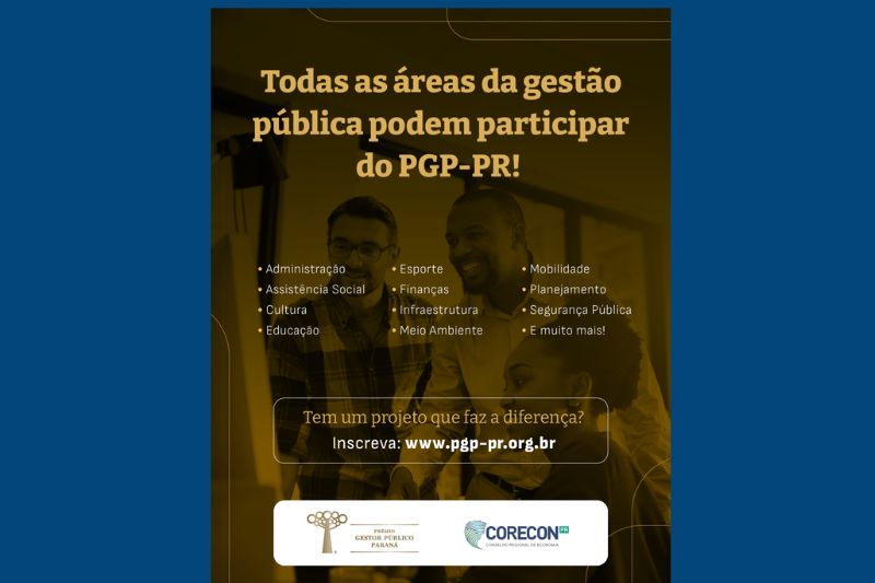 O Prêmio Gestor Público Paraná (PGP-PR), patrocinado pelo Conselho Regional de Economia (Corecon), está com inscrições abertas e convida gestores públicos de todo o estado a apresentarem projetos que contribuam para a melhoria da administração pública. As inscrições vão até o dia 30 de junho.